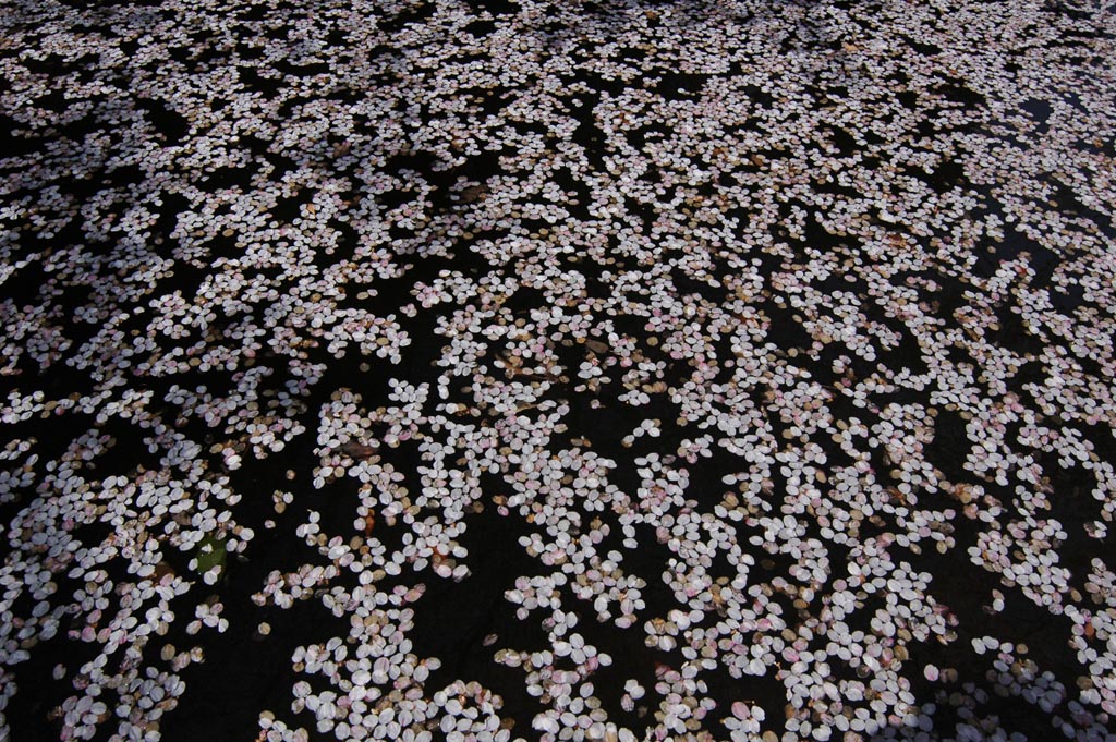 小さな池にビッシリ積もった桜の花びら