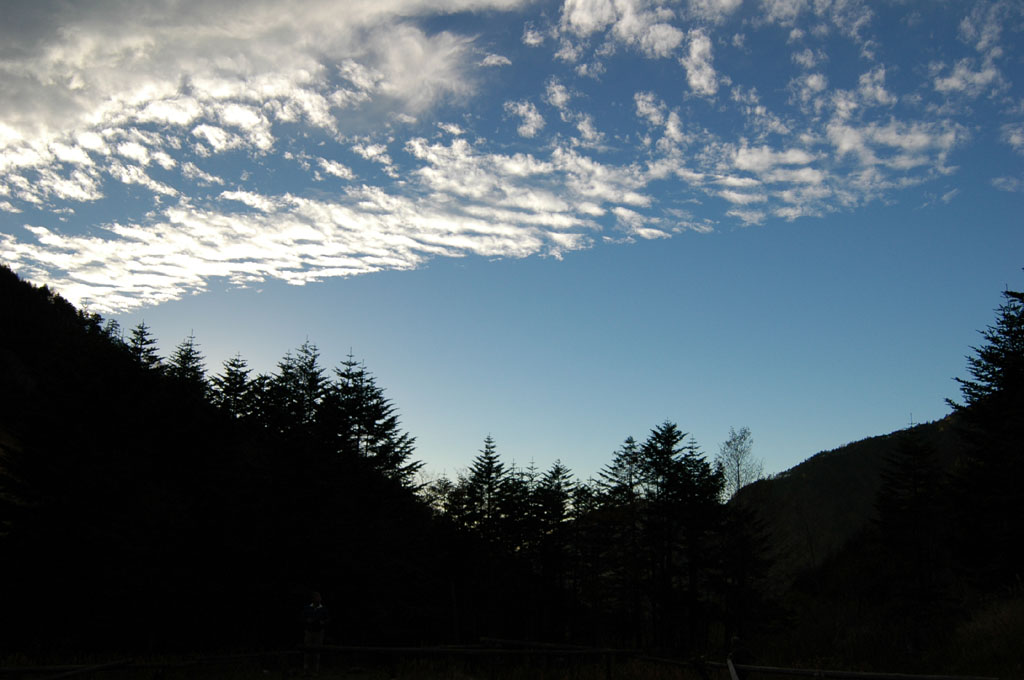 | ごくごく普通の構図だが、赤岳、阿弥陀岳と空のコントラストがlくっきりしてつい写したくなった。 |