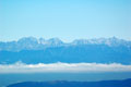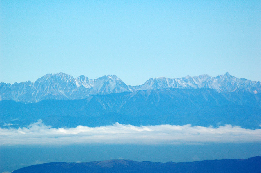 遠く乗鞍岳が見えた。もやの上に頭をのぞかせる3000m峰はうっすらと雪化粧していた。 |